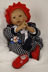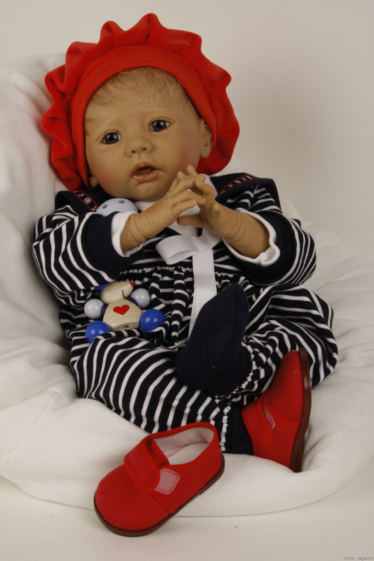 blond im Matrosenanzug und roter Mütze und roten Schuhchen
